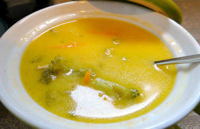 Reza's favorite cheese soup I decided to make nice and hearty. The broth is creamy and flavored with sharp cheddar cheese, and it's chock full of broccoli, potatoes, carrots, celery, and onions. Plus, to thicken it up a bit, since there's not much evaporation in the slow cooker, I added a couple tablespoons of instant potatoes. That's totally optional: you can add rice or noodles with will absorb some of the liquid, go for a cornstarch slurry, or leave it as is, but I liked it this way.