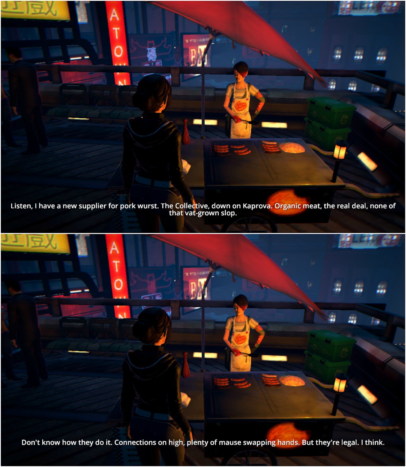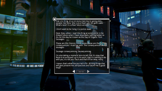 However, this is a gritty technopunk future, so when Nela reveals that she has some very rare real pork sausages for sale, it's a bit of a game changer.